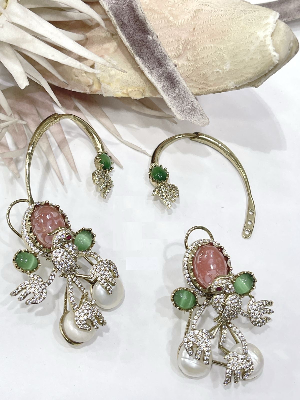 A perfect blend of tradition and modern artistry, these ear cuffs redefine statement jewelry. Designed with intricate detailing, encrusted crystals, and bold gemstones, they capture the elegance of baroque charm while offering the versatility of detachable styling. The luminous pearls and sparkling stones create a regal yet contemporary look, making them ideal for weddings, festive occasions, or elevating any evening ensemble.