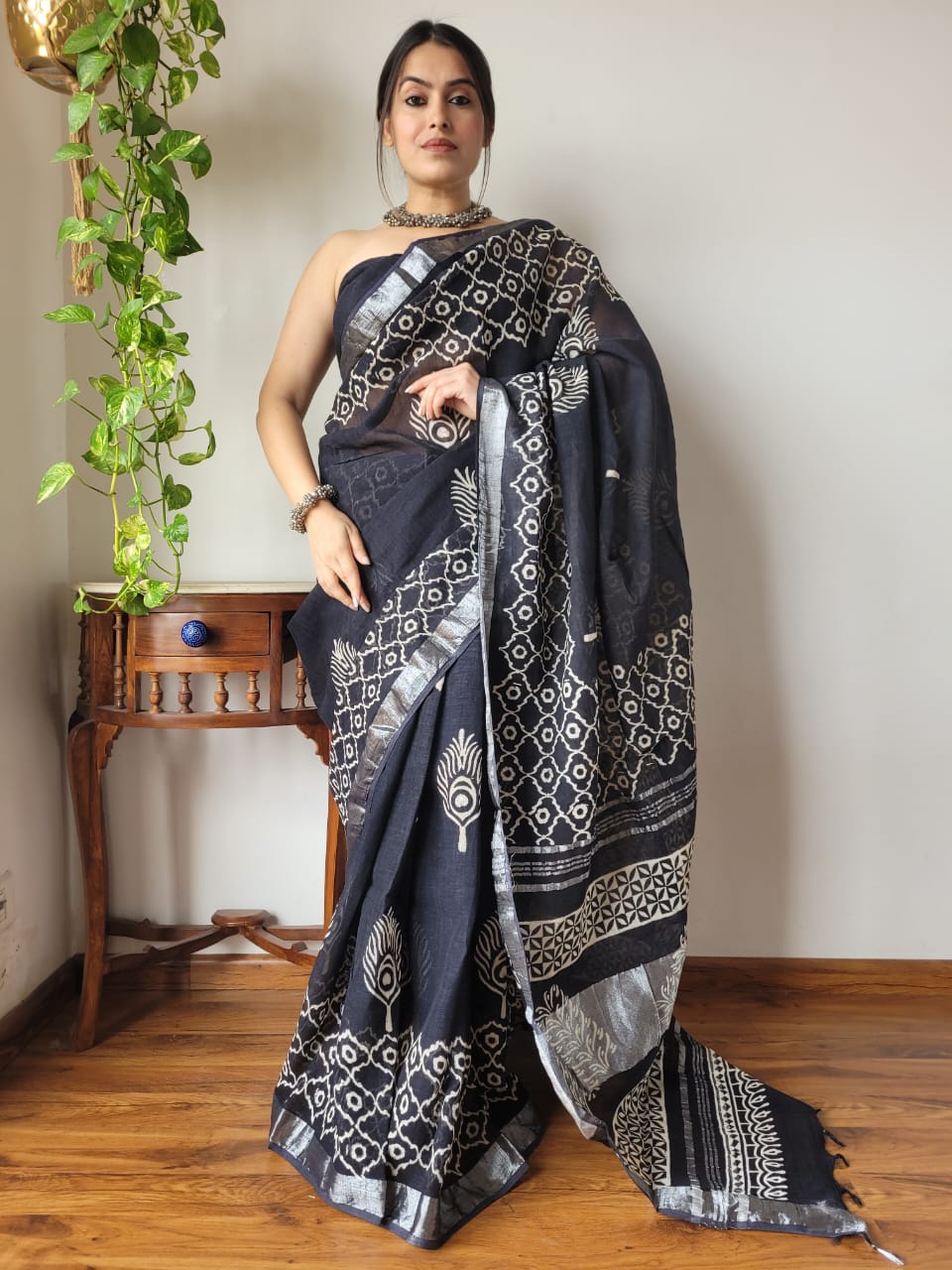 👉 *Pure Summer Linen Saree*