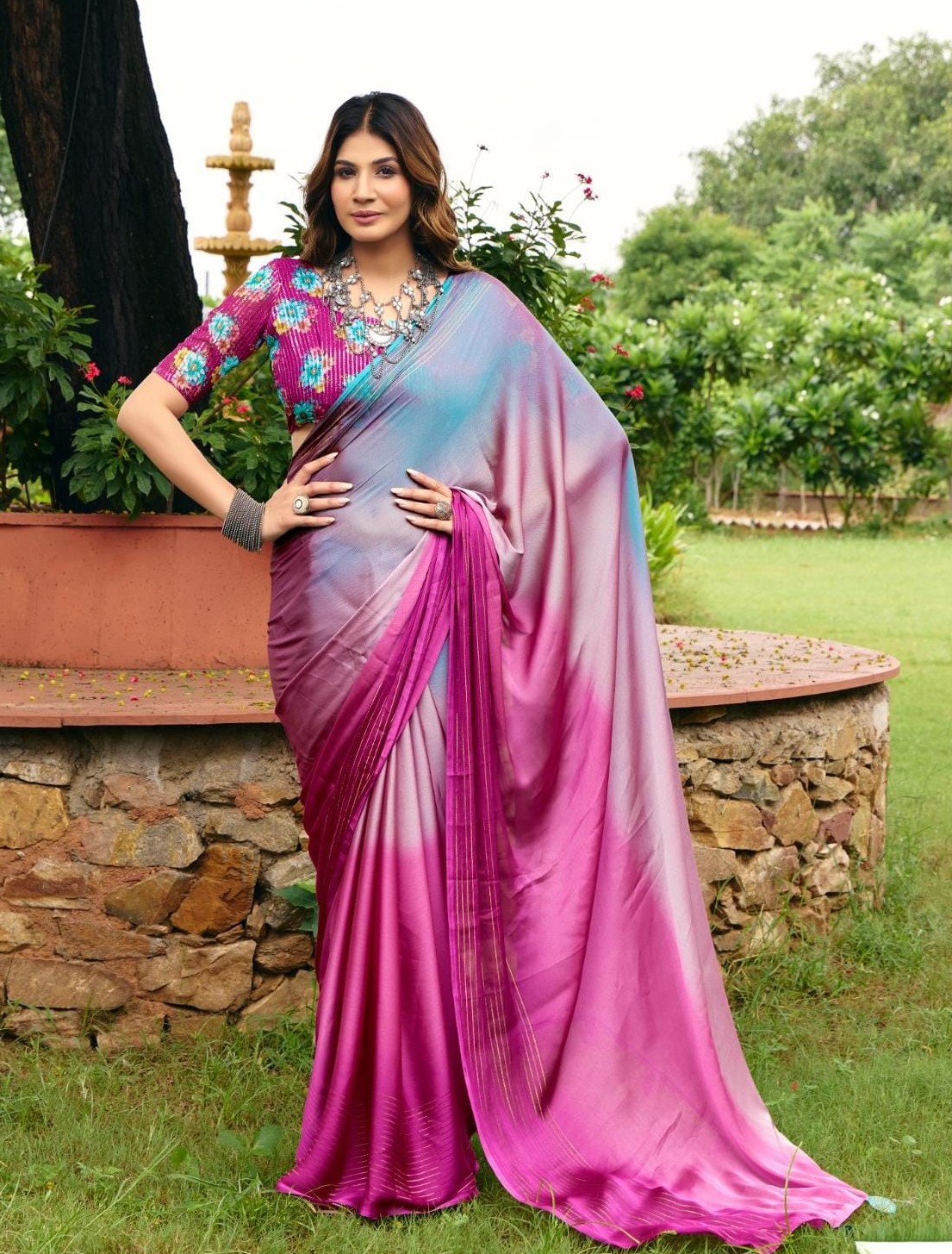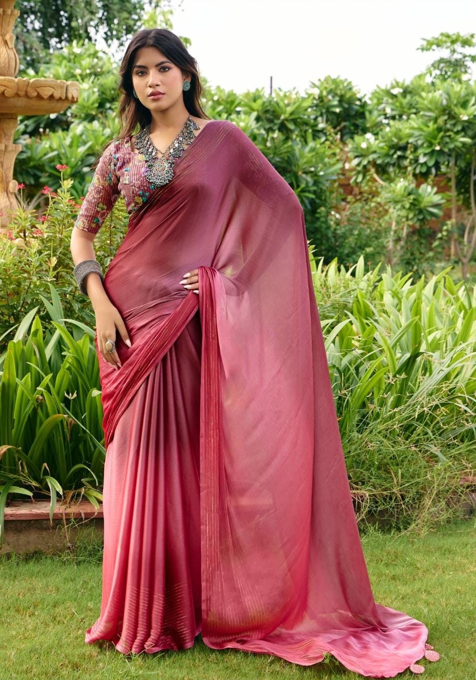 The soft, flowing drape captures light in every move — creating a radiant glow that mirrors your inner grace. From pastel dreams to jewel-toned elegance, Lumina Weaves celebrates the brilliance of every woman who wears it — luminous, timeless, and effortlessly divine.