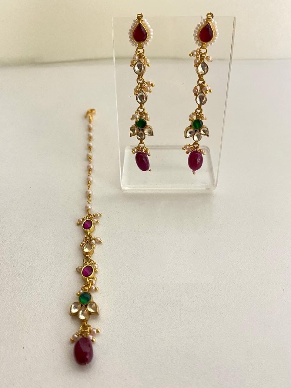Graceful and timeless, Palki-e-Moti embodies the elegance of a royal bride’s procession. Adorned with lustrous pearls (moti) and intricate Kundan detailing, these earrings capture the charm of heritage craftsmanship. The soft shimmer of pearls blends beautifully with golden accents, creating a look that’s both regal and romantic. Perfect for weddings, festive celebrations, or traditional ensembles, Palki-e-Moti carries the poise of royalty and the purity of pearls — a true ode to classic beauty.
