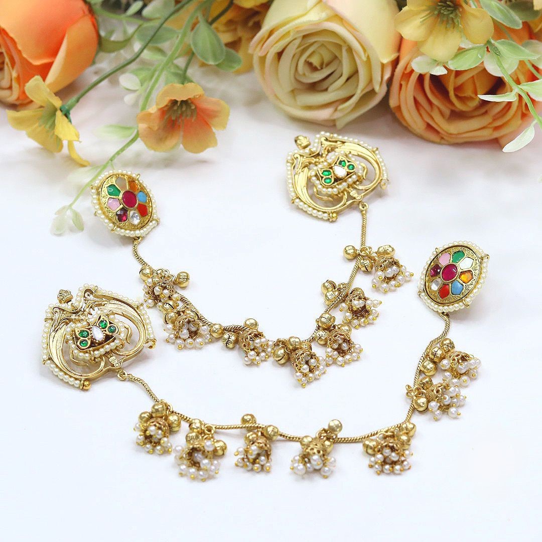 Inspired by the grandeur of royal traditions, the Royal Riwaayat Baalis embody timeless elegance and cultural heritage. Crafted with intricate motifs, vibrant enamel accents, and delicate pearl drops, these earrings capture the essence of regal artistry. Perfect for weddings and festive occasions, they add a majestic touch to any ensemble, celebrating the beauty of age-old craftsmanship with a modern charm.