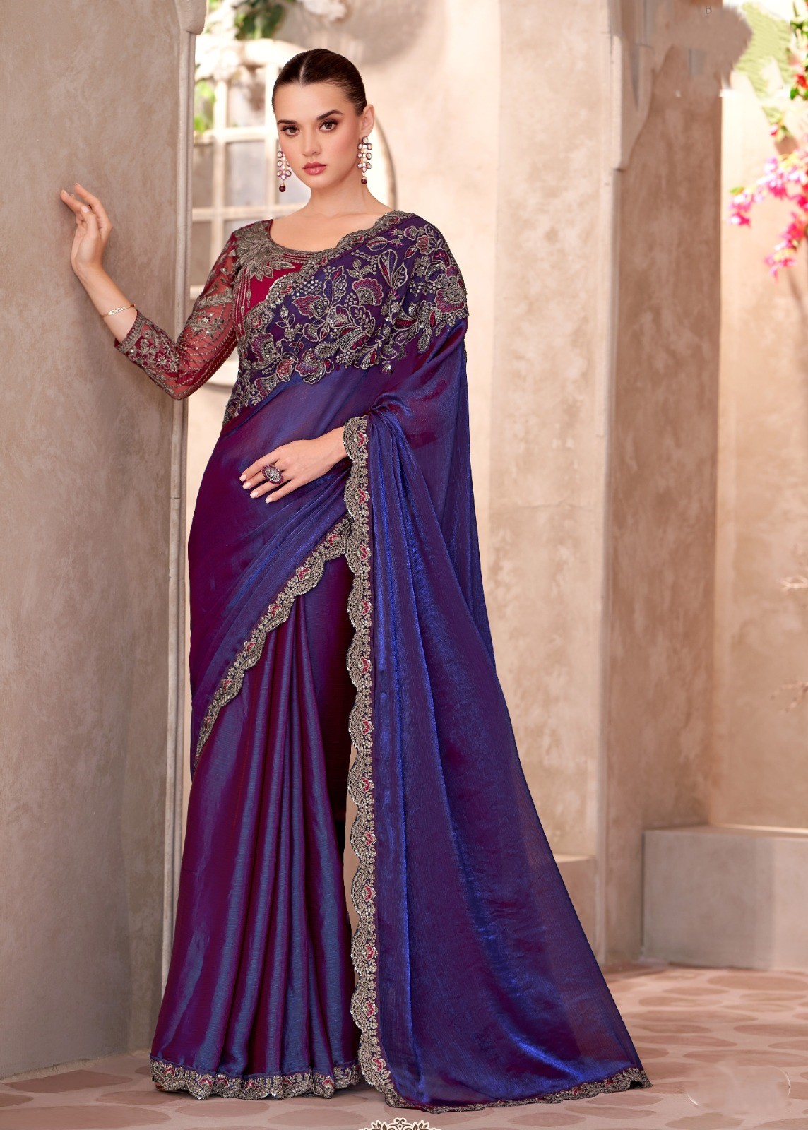 Draped in regal elegance, the Royal Zariya Saree is a masterpiece of timeless charm. Crafted in shaded georgette, it flows with a luxurious grace, while the intricate embroidery on the blouse and borders adds a touch of opulence. The deep jewel tones, paired with delicate golden threadwork, exude sophistication and grandeur, making it perfect for weddings, festivities, and royal soirées. A true statement of class, beauty, and heritage.