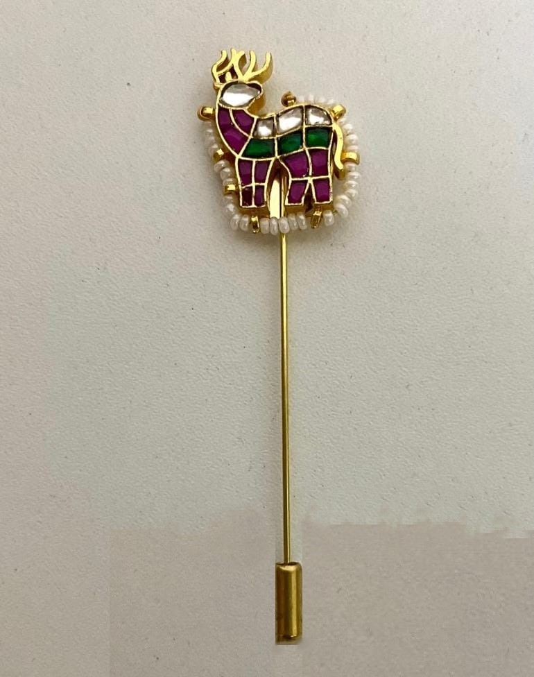 Delicate white bead drops add graceful movement, while the intricate gold-toned filigree highlights its timeless artistry. Perfect for weddings, festive celebrations, or formal soirées, the Royale Hair Pin transforms any hairstyle into a statement of opulence and classic beauty.