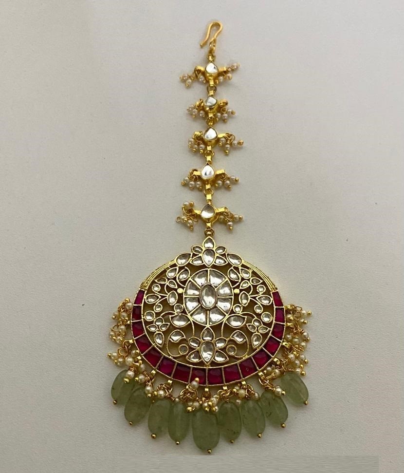 An emblem of timeless royalty, the Shahi Tikka is designed with exquisite craftsmanship and adorned with radiant stones that reflect regal elegance. Perfect for brides and festive occasions, this tikka crowns your look with sophistication and grandeur. Its intricate detailing and majestic aura make it a true heritage piece, adding a touch of royal splendor to every celebration.