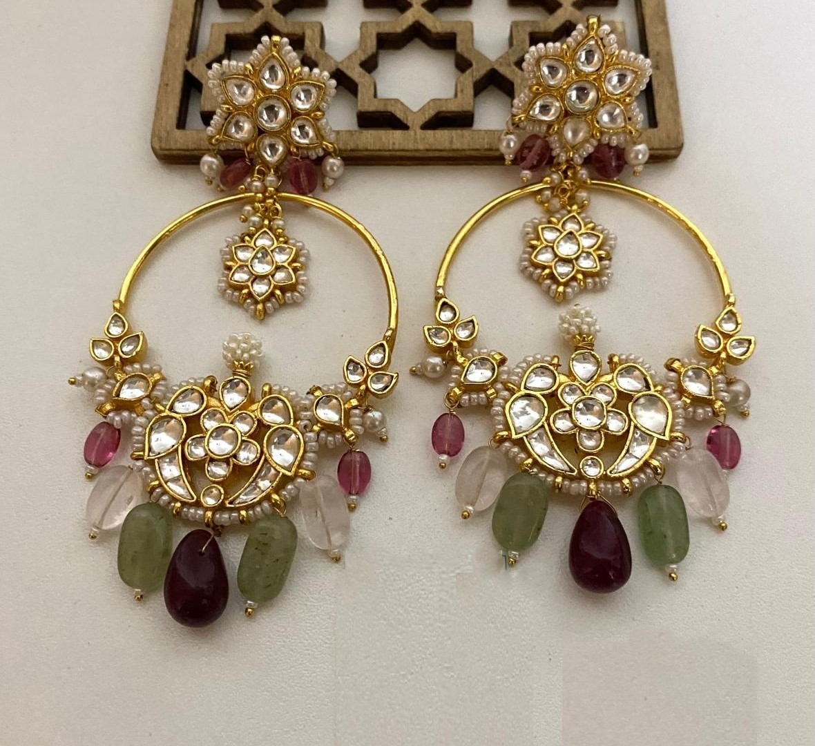 Featuring a regal gold-toned crown adorned with delicate pearls, ornate antique silver ghungroos, and colorful enamel motifs, these statement earrings capture the essence of royal grandeur.