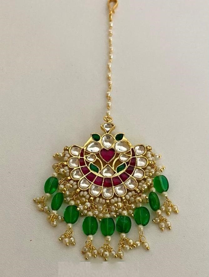 A true reflection of golden elegance, the Zarreen Shishpatti is exquisitely handcrafted with intricate detailing and shimmering kundan work. Its graceful design rests beautifully on the forehead, adding a regal charm to bridal and festive attire. Perfect for weddings and cultural celebrations, this timeless piece embodies heritage beauty and the grandeur of tradition.